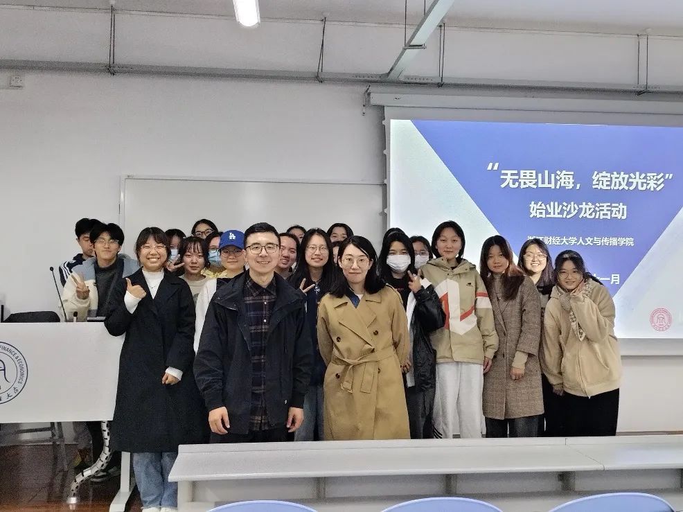 11月20日晚,tyc122cc太阳成集团新闻传播学类4班于C304举办了班级始业沙龙活动。公司传播学老师,23新传4班班主任郝文琦作为本次活动主讲人,以“无畏山海,绽放光彩”为主题,与同学们展开了关于老员工活的讨论。王阿蒙老师作为特邀嘉宾出席。23新传4班全体同学参加了本...