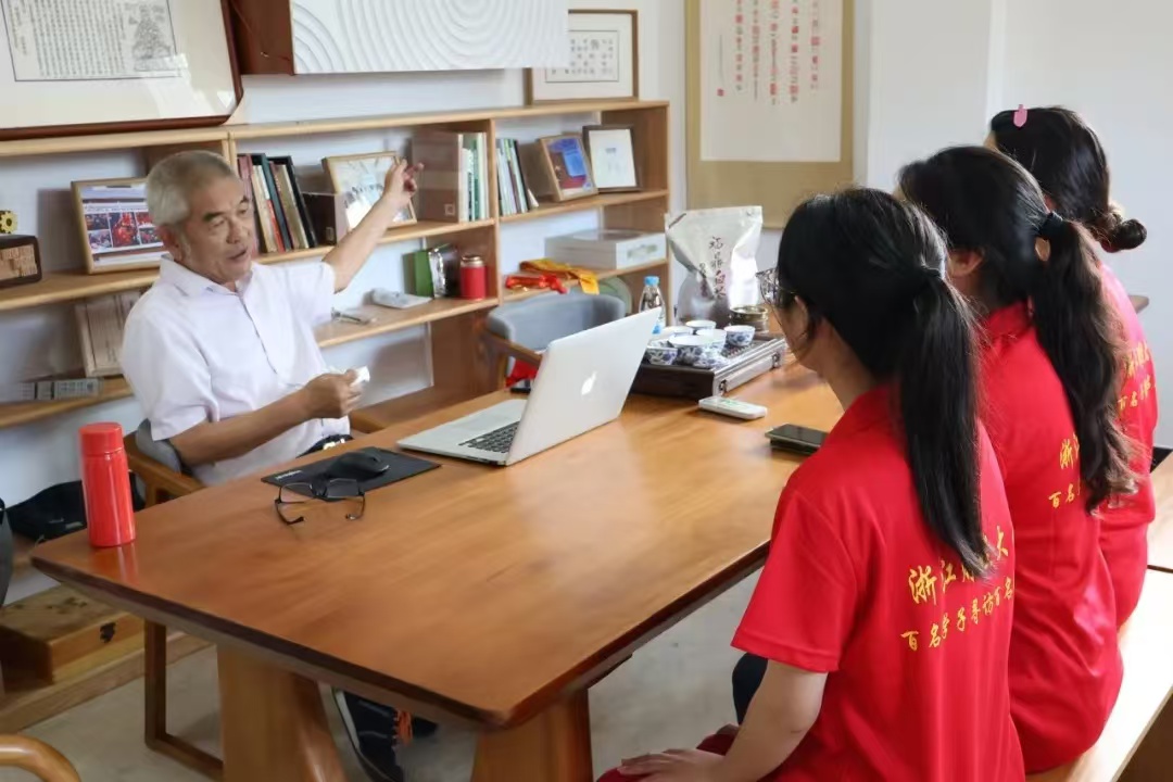 “风韵南孔:儒家文化润衢城,美丽乡村焕新颜”团队与陶瓷匠人汪家良交谈
