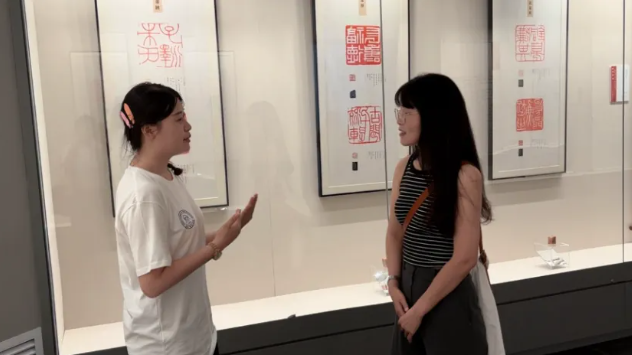 “博物馆视域下的浙江传统手工艺保护与传播研究——以制茶、竹编和篆刻为例”团队采访参观者