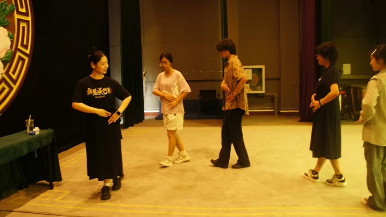 杨蝶珊老师教导“溯南戏之源,品瓯剧之韵——南戏在瓯剧中的‘复排’探究”团队成员瓯剧身段