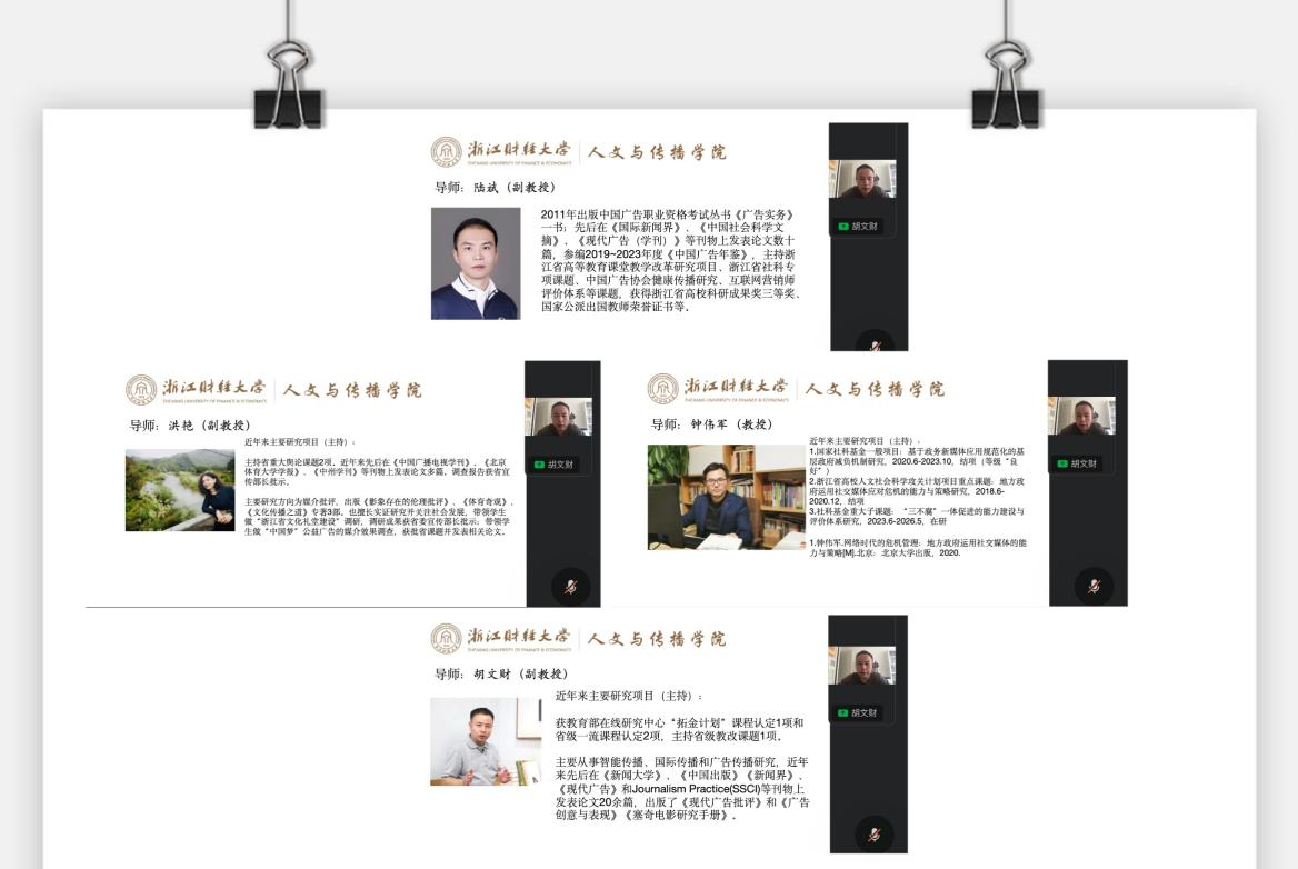 为进一步拓宽生源渠道,改善生源结构,提高生源质量,9月24日下午,tyc122cc太阳成集团举办了浙江工商大学专场研究生招生线上宣讲。汉语言文字学硕士生导师徐键老师、新闻与传播专业硕士生导师胡文财老师、国际中文教育专业硕士生导师姚晓萍老师进行此次宣讲。