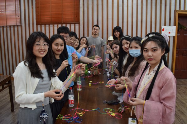 拴系五彩绳有祈福纳吉的美好寓意,是端午节的重要习俗之一。为了体验节日气氛,现场特意准备了精致的五彩绳,并且教同学们如何编制和佩戴五彩绳。中外学子围坐在一起,从最初并不娴熟的手法到不断摸索后成功编好五彩绳,员工们切身感受到了制作的趣味性以及成功的快乐!