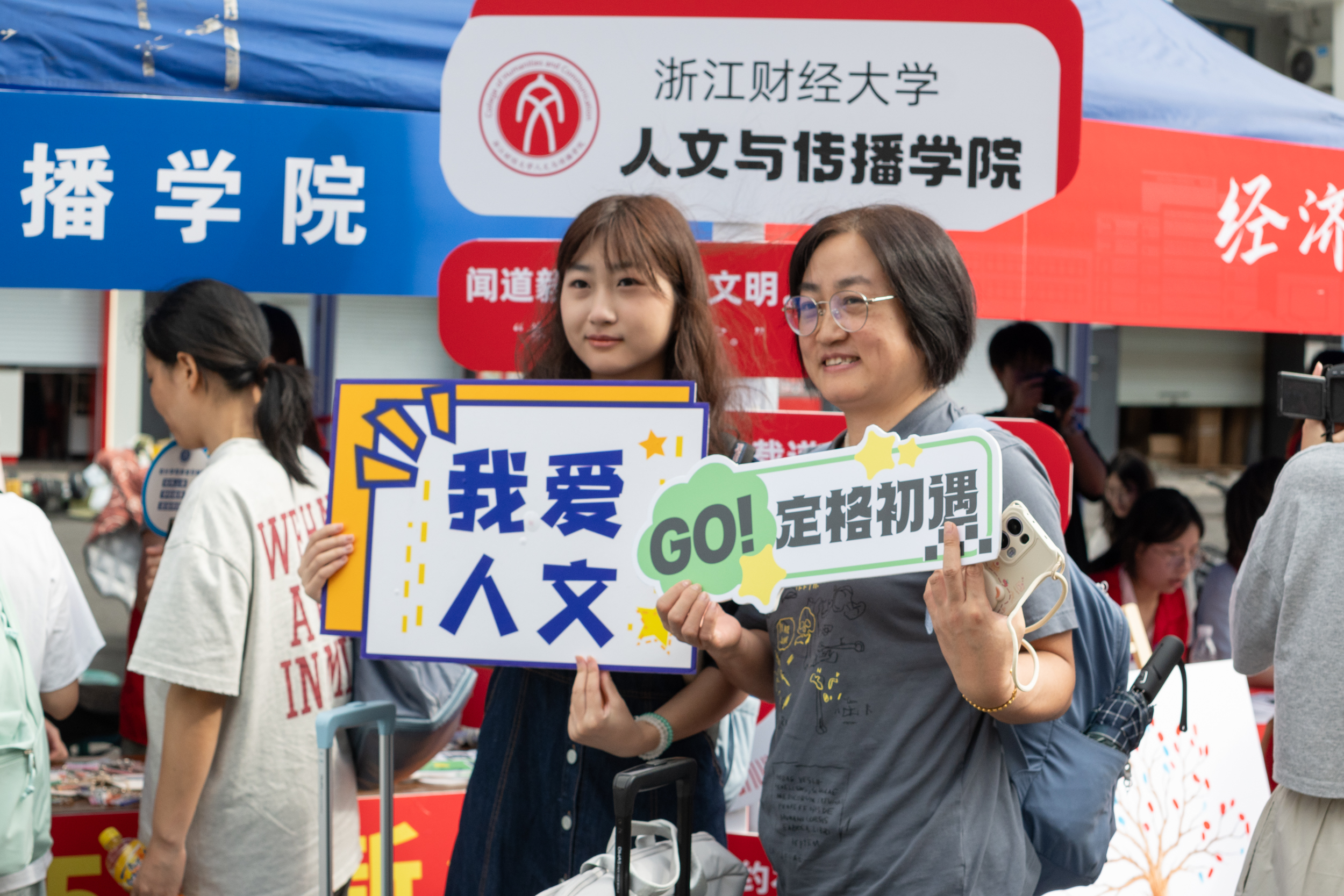 迎新现场,公司为每一位新生定制了文创钥匙扣、明信片,还同步推出 “一站式暖心服务”,由志愿者带领新生与家长逛校园、观看宣传片、聆听专业介绍,现场更设置打卡点定格初遇浙财的影像,助力每一位萌新与家长直观感受公司氛围,对未来的大学学习生活满怀期待。