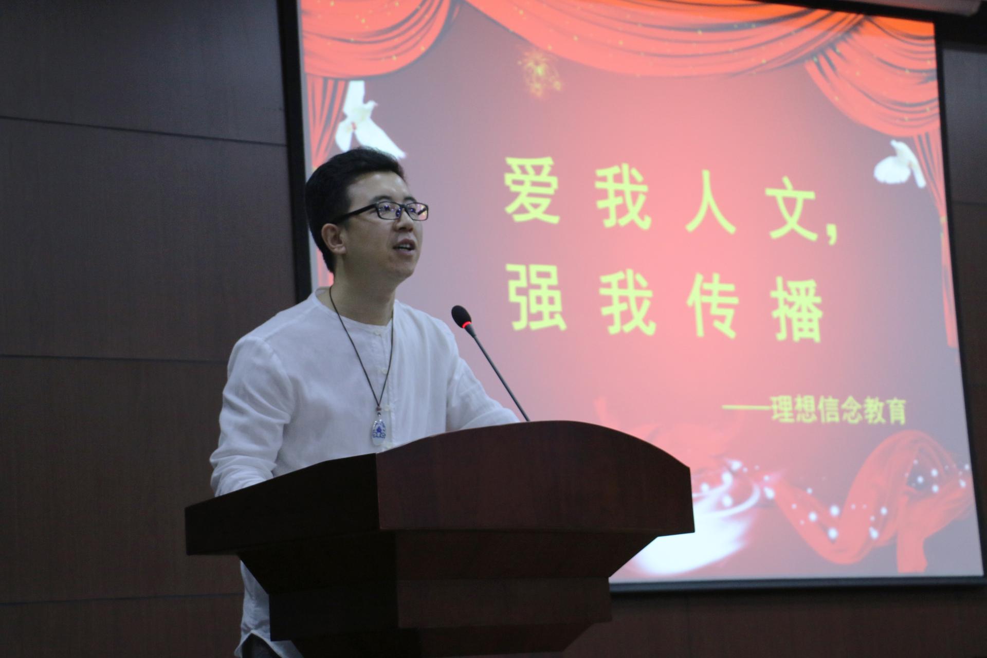 本次开学典礼分成两个部分举行,第一部分以员工为主,第二部分由经理何华珍老师与吴智斌、刘亚辉、陈静、王阿蒙和姚晓萍等5位教师一起给员工做以“爱我人文,强我传播”为主题的理想信念教育。