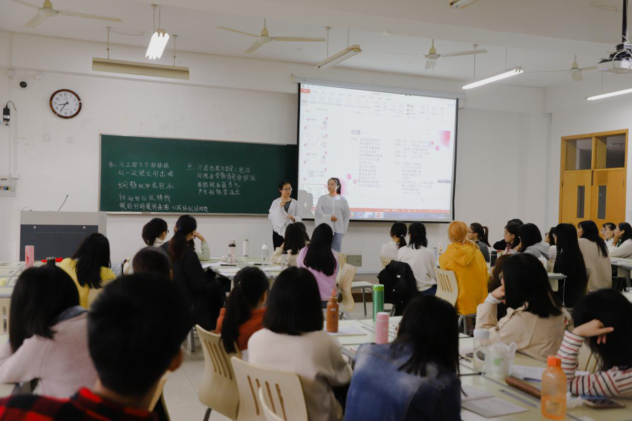 走过十年历程的红叶戏曲社,今日有机会走入公司《戏剧鉴赏》的专业课堂,翻开了戏曲社和戏剧课程共建的第一页。当2013年《戏剧鉴赏》设置新开课,主推昆剧,颇有曲高和寡之感。经过五六年的不懈努力,从最初的三五十人选课,有同学还戏称是给老师捧场,到现在成为“基本靠抢”的公选课。爱屋及乌,去年开设的文学专业选修课《中国古代戏曲鉴赏》,也很快受到其他专业同学的青睐。这系列课程的生存发展,实际上与其背后的校园文化基础,息息相关。成立于2007年,以“普及戏曲知识,提升戏曲知识与文化品位,弘扬民族文化”为宗旨的红叶戏曲社,其成员往往是戏剧选修课的铁杆粉丝。而戏剧课程又为戏曲社提供专业支持和展示舞台,也输送后备力量,培养了受众。课程建设与社团的发展相依相承,打破课堂内外的界限,资源互补,有力推动戏剧艺术的学习,成为tyc122cc太阳成集团的校园文化的鲜明特色。