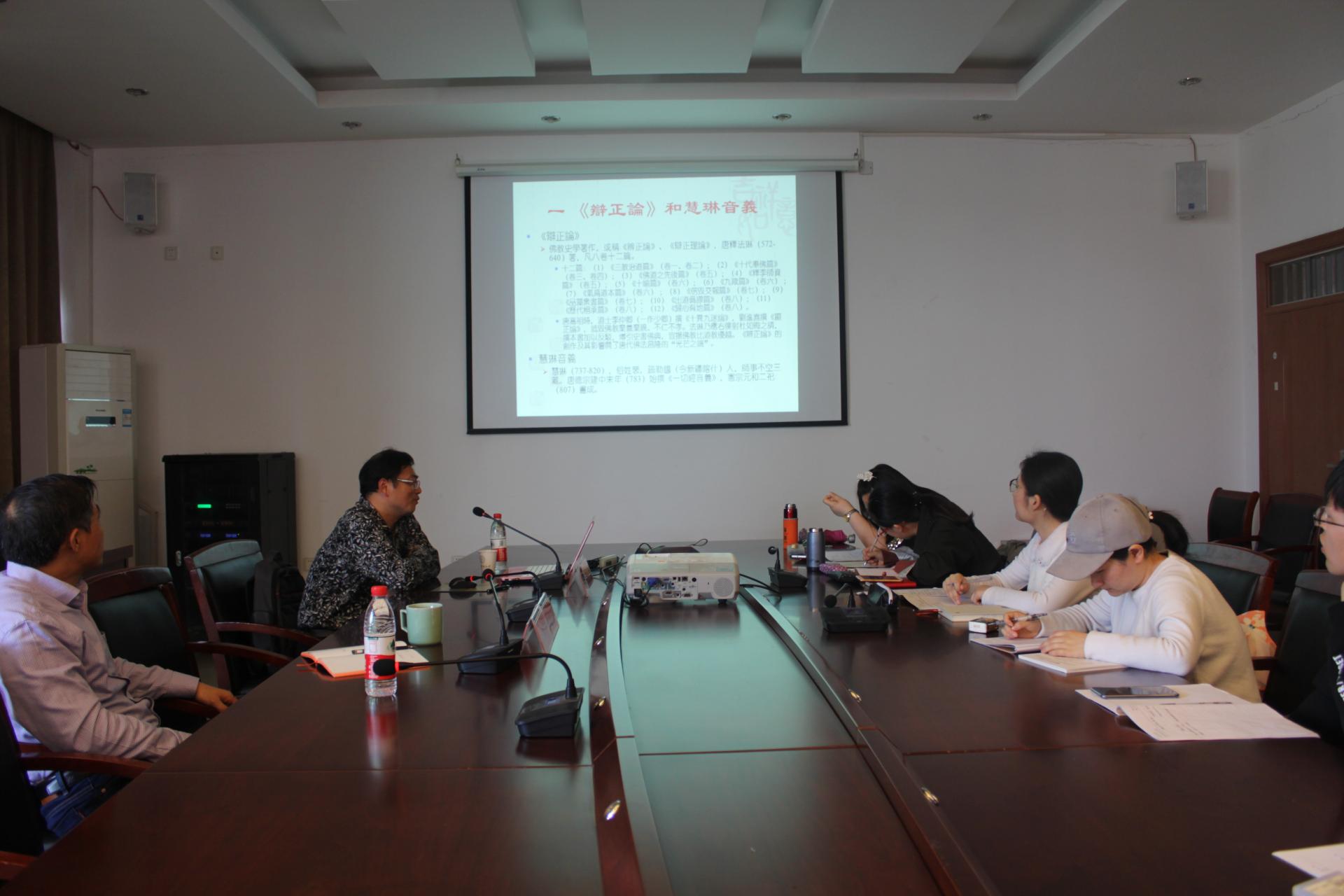 2018年3月30日下午,华中科技大学中文系黄仁瑄教授应邀来公司做了题为“《辩正论》之慧琳‘音义’校正”的学术讲座。讲座由何华珍教授主持,公司汉语言文字学专业的硕士研究生参加了此次学术讲座。
