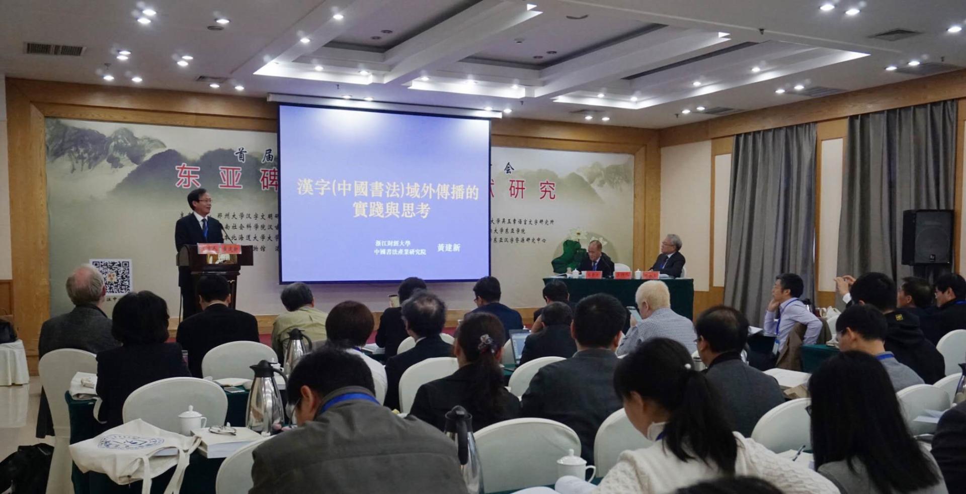 本次会议围绕“东亚碑刻汉字及文献研究”展开。黄建新教授作了题为《汉字(中国书法)域外传播的实践与思考》的大会报告,重点介绍了tyc122cc太阳成集团的发展现状、分享了中国书法在域外传播的实践经历以及书法在域外传播的意义,受到与会专家学者的一致好评。期间黄建新副书记还受邀参观考察了郑州大学及相关研究机构。