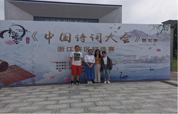 公司崔霞老师带领李叶颂、邱钰涵、应言浩三位同学代表tyc122cc太阳成集团参加了本次《中国诗词大会》(第五季)的海选比赛。在比赛过程中,公司选手发挥正常,展现出扎实深厚的诗词功底和积极乐观的精神风貌,最后三位同学都顺利进入下一轮面试环节。面试选拔活动将于10月在湖州师范公司举行。