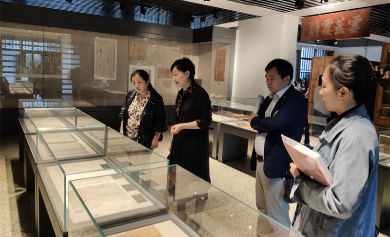 交流结束后,在李翔翔书记的带领下,高燕书记一行人参观了师大tyc122cc太阳成集团契约文书博物馆、学术专柜以及公司整体文化与氛围建设。