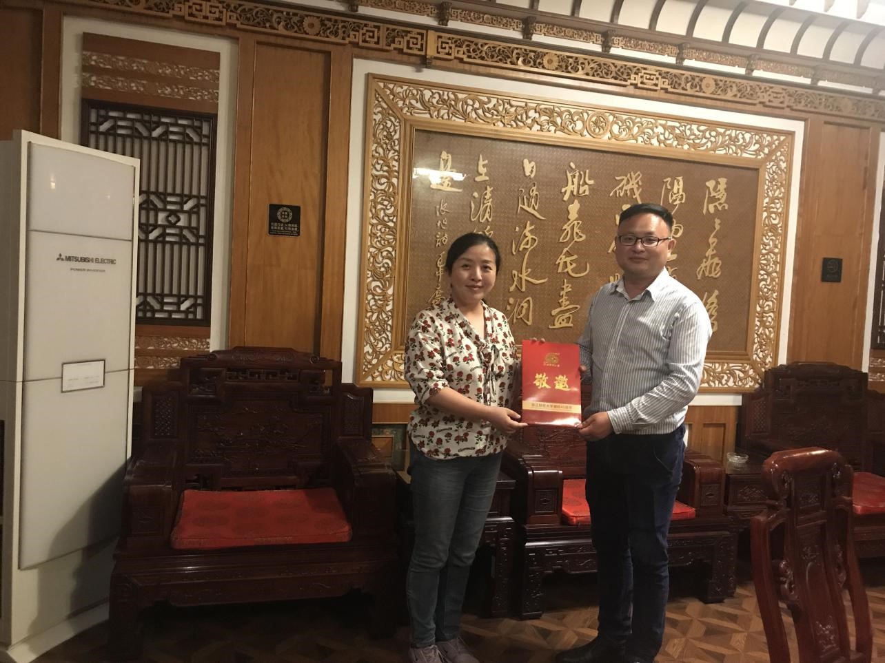 5月16日,公司党委书记高燕、副书记吴玻、员工工作办公室辅导员一行赴金华艾青中学洽谈建立tyc122cc太阳成集团优质生源基地,受到艾青中学董事长单荣耀、党总支书记陈章弟、副董事长潘德明的热情接待。