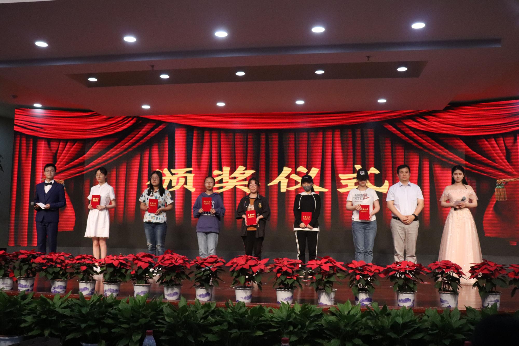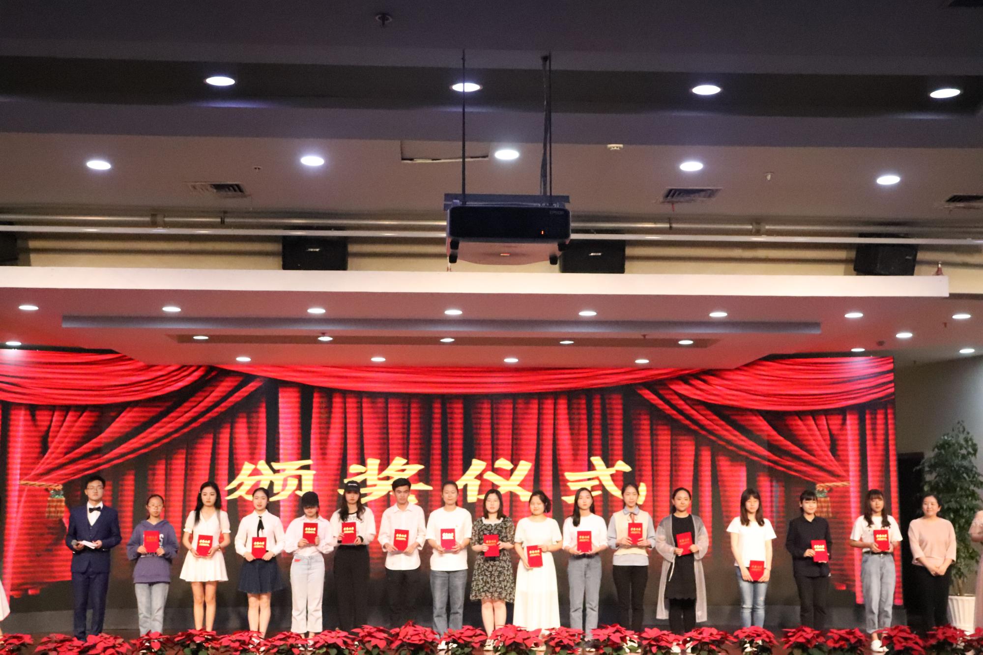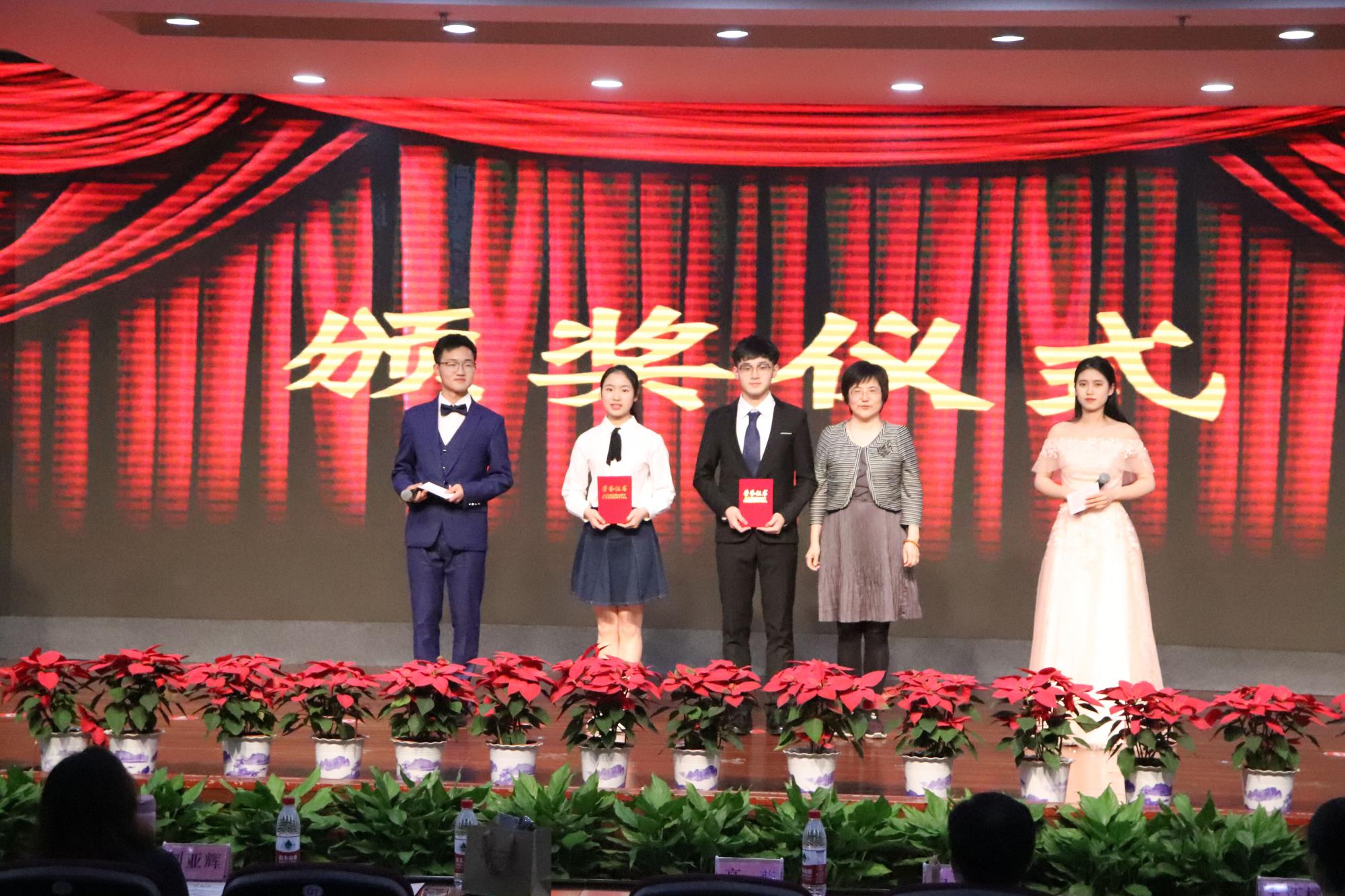 高燕、姚红、吴玻、王怀榕、刘亚辉分别为中华传统文化推广月的“印象”创意摄影大赛、“品读国学经典”征文大赛以及中华经典诵读竞赛的一、二、三等奖的获奖者颁奖。