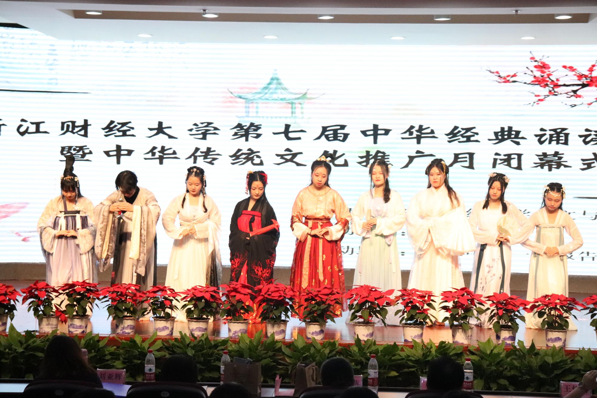 本次闭幕式内容丰富,形式新颖。仪赏社汉服走秀,开场尽显中华传统服饰之美;公司合唱团的《牵丝戏》,向我们展示了古典声乐的魅力;《春天,遂想起》诵读中华经典,金声玉振;浙江民歌《采茶舞曲》,让我们领略了赏心悦目的艺术瑰宝;《乌托邦与三宗罪》集体朗诵,扣人心弦,字字珠玑。