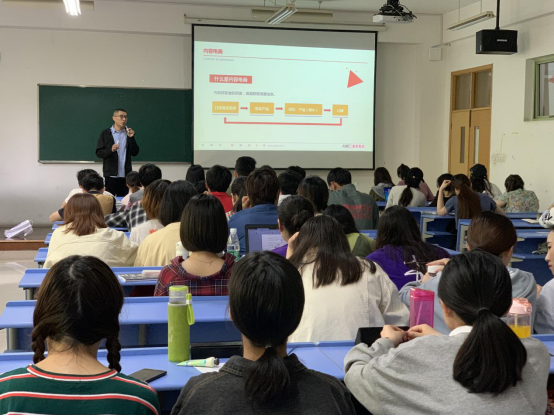 徐攀总监以广告说服为引子,系统讲述了他目前所观测的新媒体行业趋势——内容电商。他通过公域媒体、私域媒体以及流量红利领域的成功案例分析了内容说服在广告营销中的重要作用。徐总还分享了广策公司作为杭州本土传媒的革新者在内容营销方面的创新,帮助同学们更好地理解内容电商与交易型电商的区别。