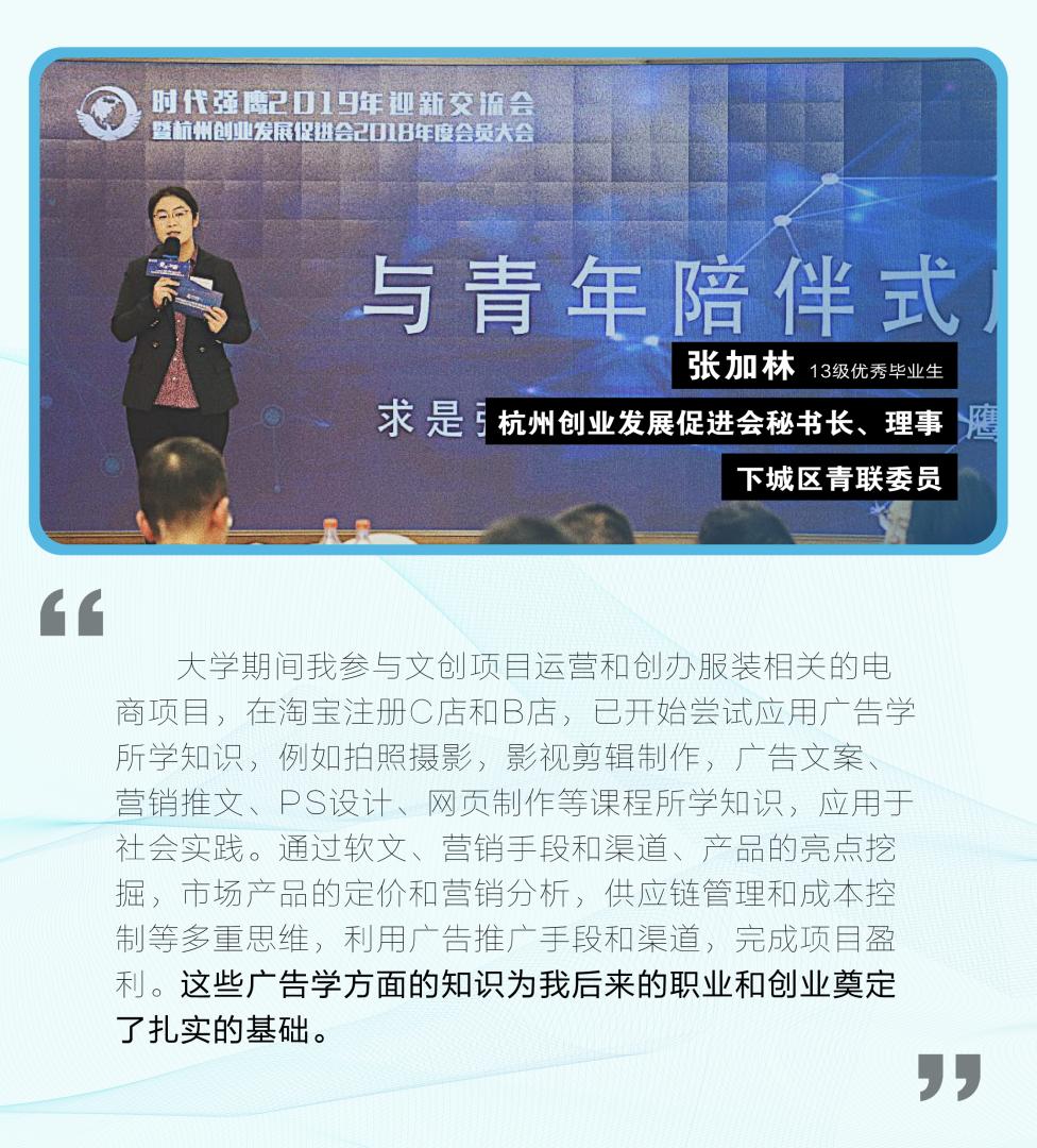 浙财广告学专业创立于2002年,至今已有17年的发展历史,专业教育扎实深厚,教学成果卓越。在2016年浙江省教育评估院的毕业生满意度调查中,公司广告学在专业满意度一项排名全校第一。