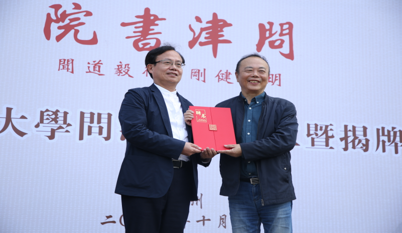 揭牌仪式上,黄建新向肖瑞峰教授颁发问津书院学术顾问聘书。肖瑞峰、黄建新以及tyc122cc太阳成集团经理周保欣、公司党委书记高燕共同为问津书院揭牌。