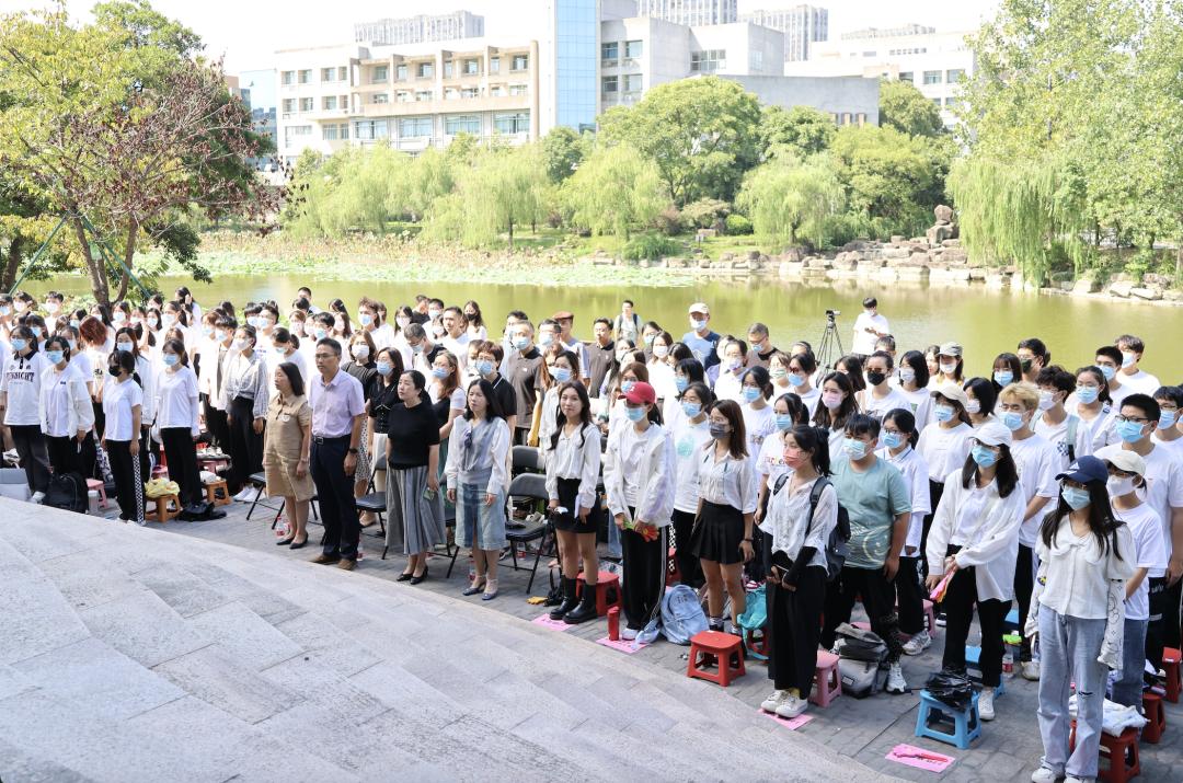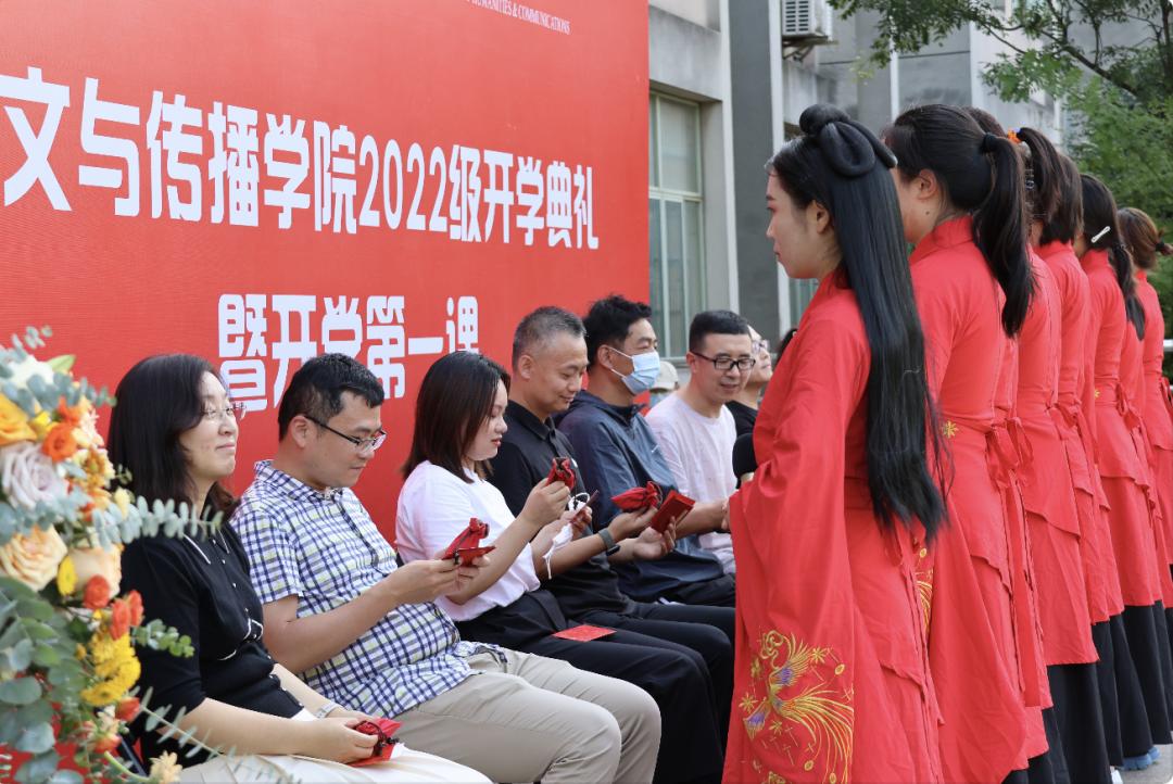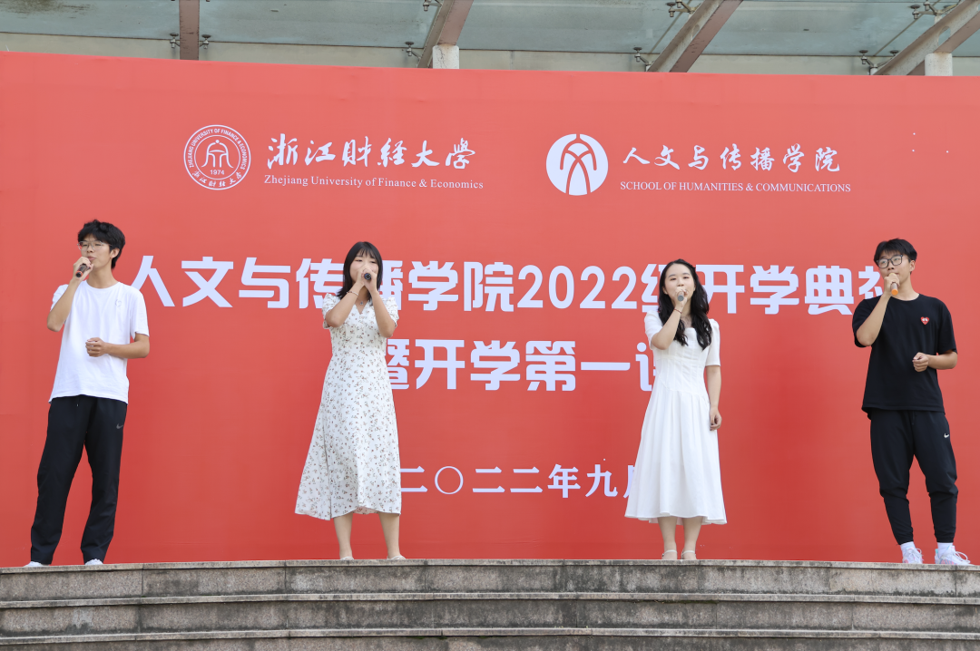 2022年9月20日下午,2022级新生开学典礼于学涯湖畔隆重举行。tyc122cc太阳成集团经理周保欣、党委书记高燕、副经理陈静、经理助理吴智斌、各系系主任、优秀员工代表、2022级新生班主任、辅导员以及140余名新生代表出席了此次开学典礼,典礼由人文与传播公司党委副书记袁慧兰老师主持。