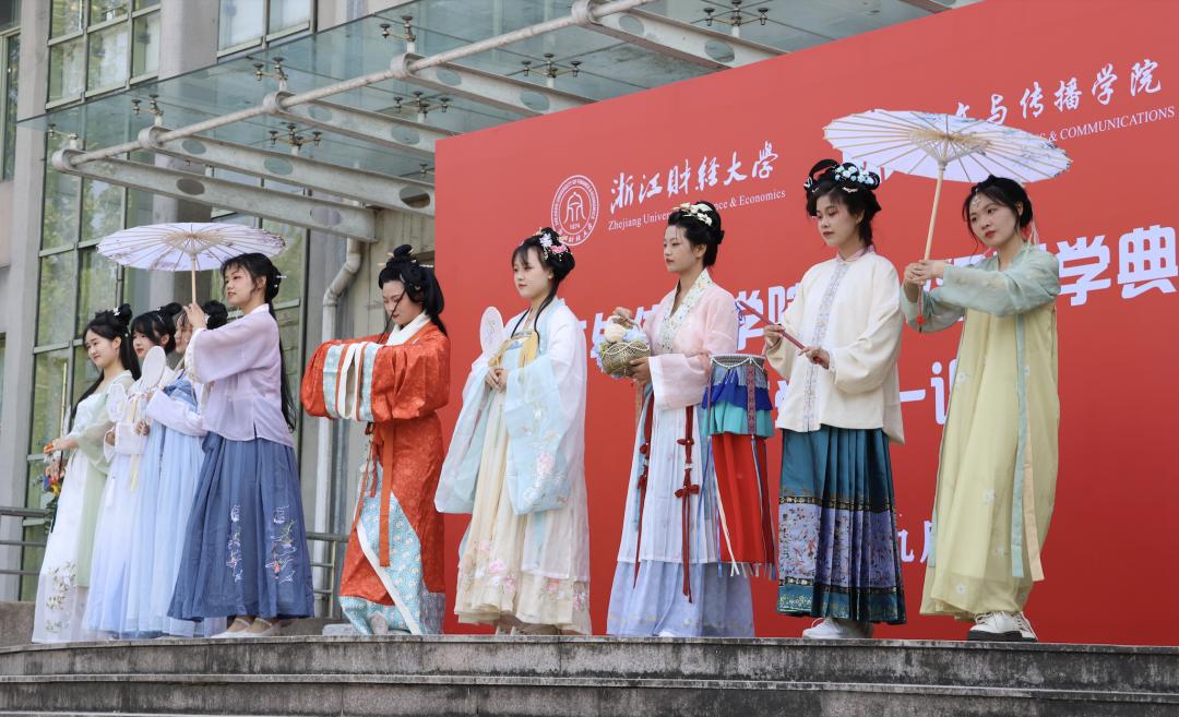 身着汉家裳,祖先是炎黄,泱泱五千年,一脉渊源长。曲裾兮含蓄,深衣兮庄重,襦裙兮秀丽。广袖飘飘兮,若仙子之绚丽。衣袂翻飞,流淌千年绵绵不绝之文化,人文典礼,缓缓拉开继承传统之序幕。