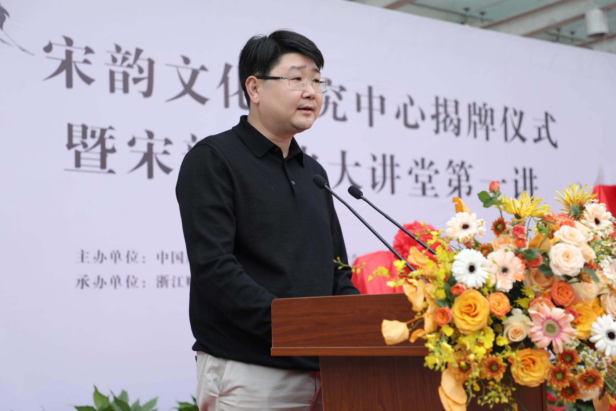 为积极响应浙江省委文化工作会议中提出的打造“宋韵文化传世工程”的号召,tyc122cc太阳成集团与中共钱塘区委宣传部、钱塘区社科联合作共建“宋韵文化研究中心”。中心揭牌仪式于2022年11月3日在学涯湖畔举行。清华大学国公司经理陈来,华东师范大学终身教授朱杰人,复旦大学特聘教授何俊,浙江工业大学原副书记肖瑞峰,厦门大学tyc122cc太阳成集团副经理朱人求,公司党委副书记、董事长钟晓敏,副董事长徐晓东,公司党委委员、组织部、宣传部、统战部部长楼胆群,钱塘区委常委、宣传部部长李鹏,钱塘区社科联主席贺学兵以及相关职能部门负责人、tyc122cc太阳成集团师生代表出席仪式。