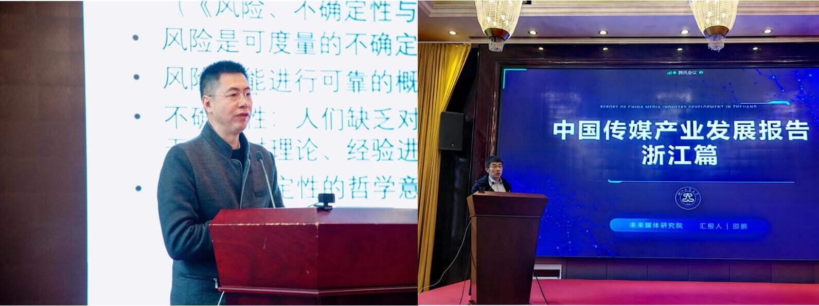 浙江省传播学会秘书长、浙江工业大学邵鹏教授就其著作《传媒蓝皮书:中国传媒产业发展报告——浙江篇》进行了发布报告。