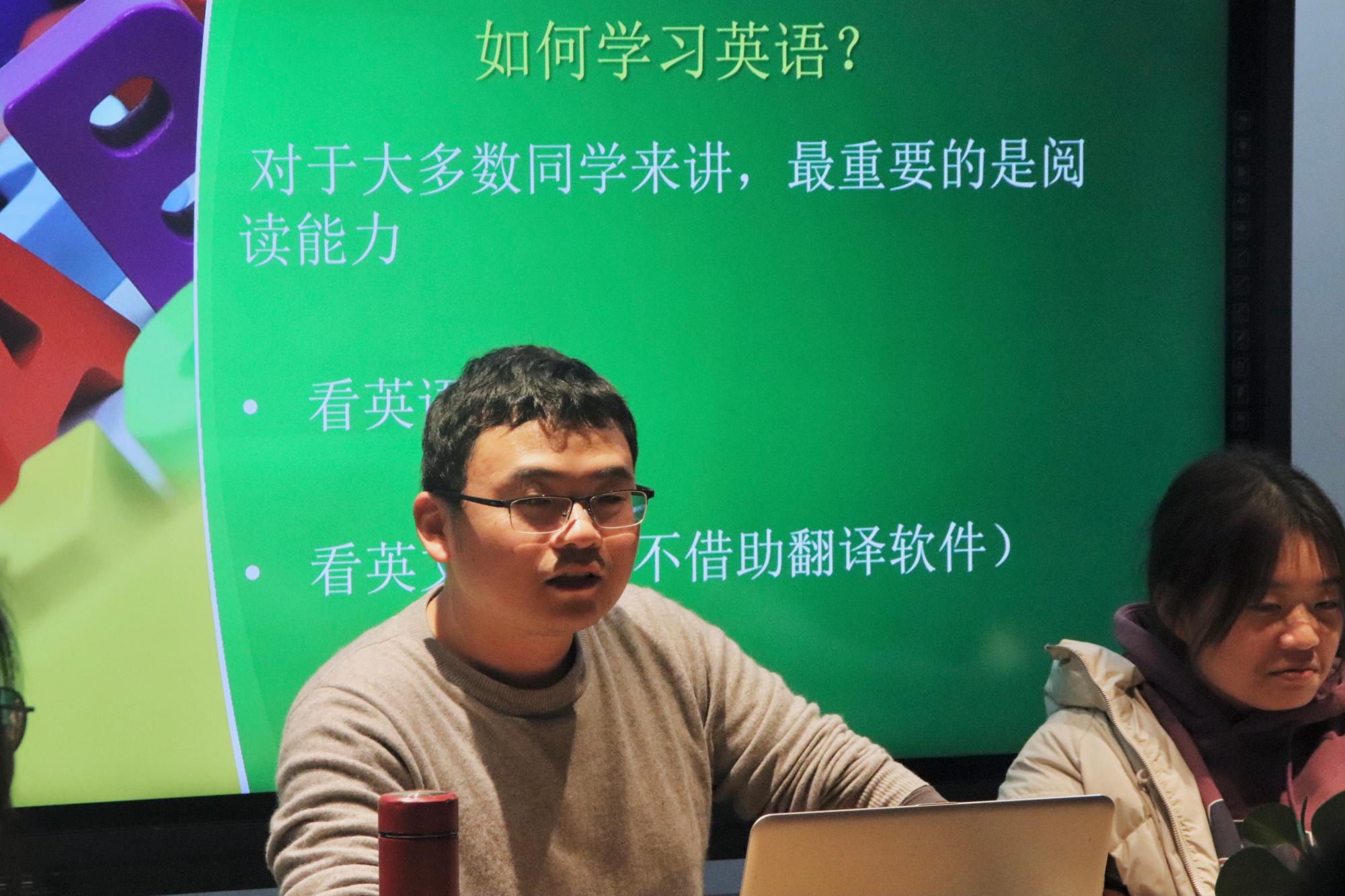 王彬老师首先从新闻就业的角度切入,描述了新闻行业水涨船高的现状。大公司的准入门槛节节攀升,为了获得敲门砖,许多同学选择了考研,而考研就必须考英语。“现在国内很多大公司都有对外传播的想法,以后的市场潜力很大。未来如果既懂媒体,又熟练掌握英语,也就能把握住这个机会”,王彬老师结合自身本科时期的经历,分析指出本科英语学习对就业资源竞争的有利影响。“等到大学毕业,再去专注英语真的没有时间,真正能有效提高英语水平,增长技能的就是这大学四年时间”,王彬老师如是说。抛开功利角度,懂一门语言,从个人对大众文化的消遣角度也意义深远。“语言是认识另一种文化的窗口,无论是听英文歌,还是看英文电影,多学一点,学的好一点还是有帮助的”,王彬老师真诚建议道。