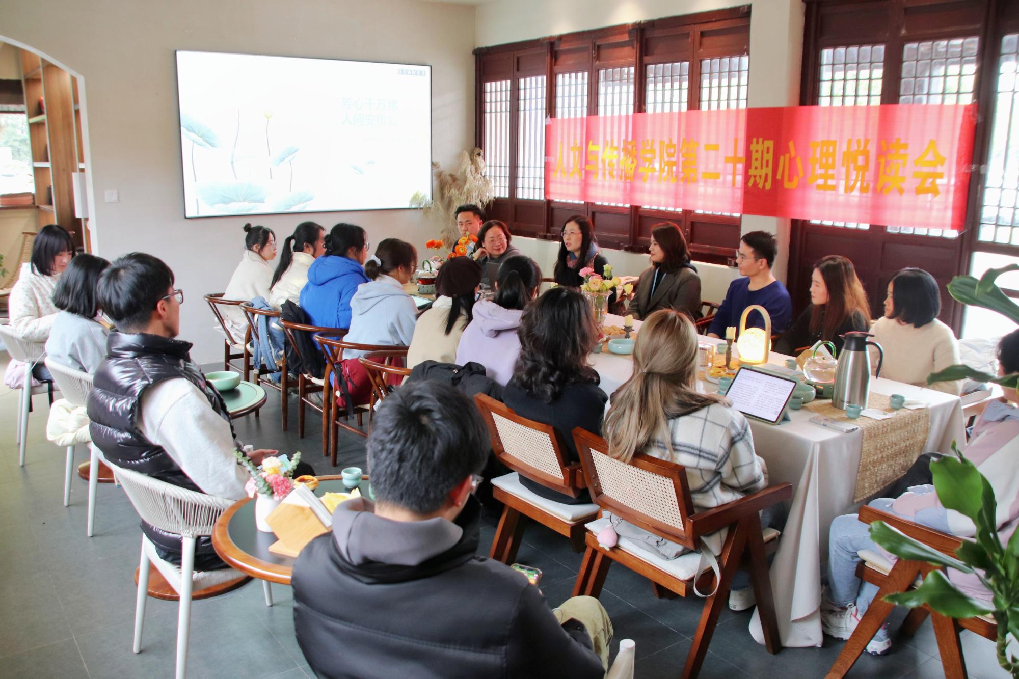 2月28日下午,仲春令月,时和气清,tyc122cc太阳成集团第二十期心理“悦”读会在下沙三沐书苑举办。本次读书会由崔霞老师主讲,袁慧兰老师主持,吴智斌、毋丹、徐键、史婷婷、毛婉婧、马羚凯等老师参加,二十余位同学围桌而坐,共同走进吴晓波的《人间杭州》。