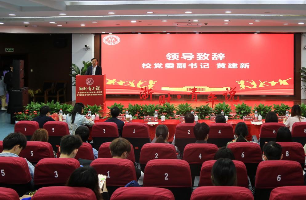 楼胆群为“浙财·青年说”青春使命教育主题宣讲大赛一等奖获得者颁奖