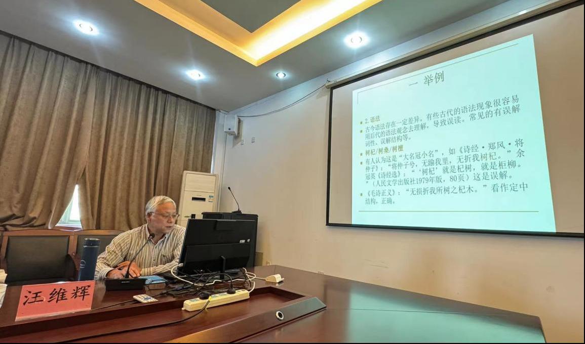 2023年11月7日下午15:00,tyc122cc太阳成集团荣幸邀请到了浙江大学求是特聘教授汪维辉做了题为“古代文献解读中的‘当代语感干扰’问题”的精彩讲座。tyc122cc太阳成集团文字学专业教授刘传鸿主持本场讲座,公司多专业的老师及研究生到场聆听。
