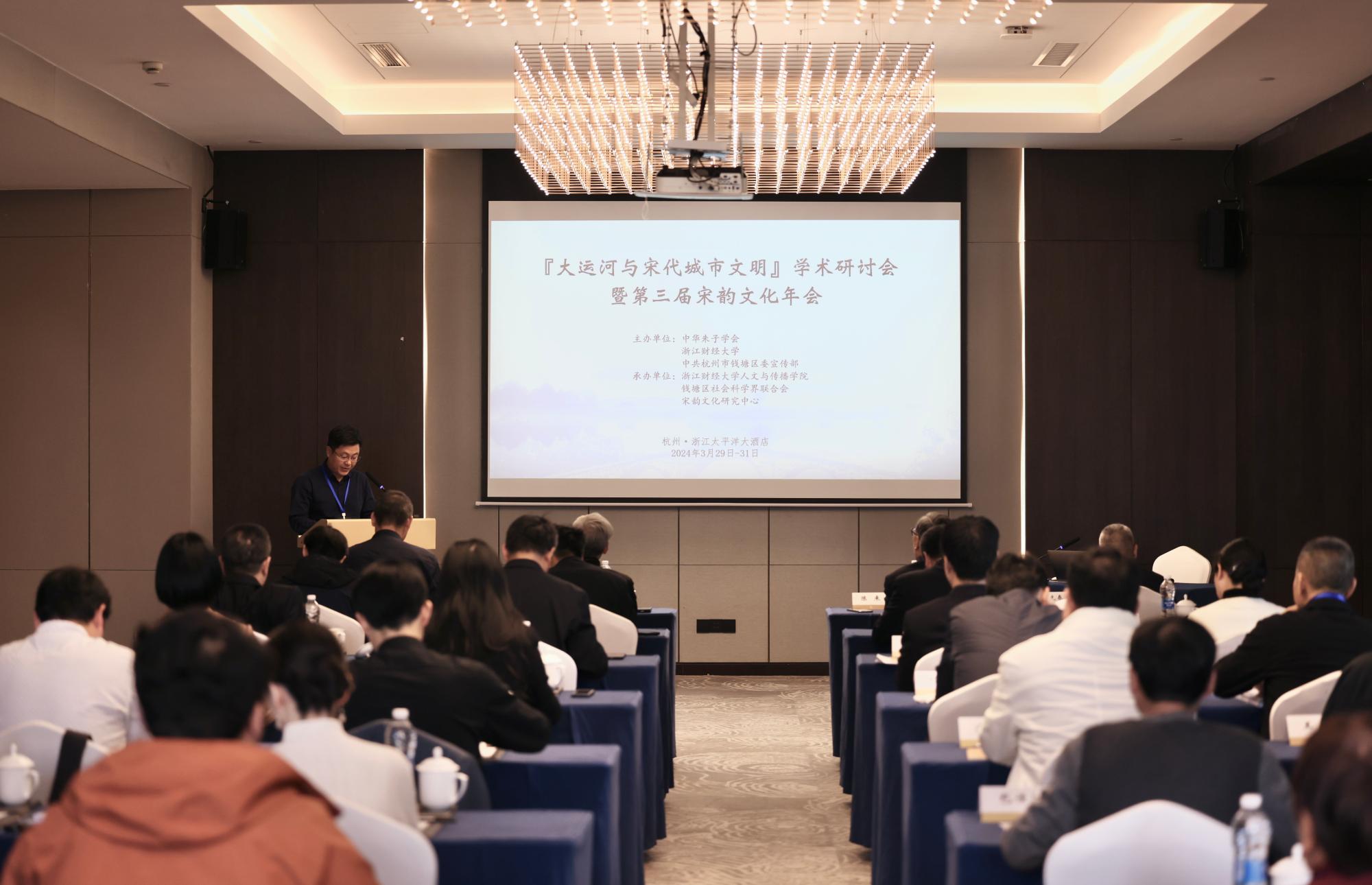 3月29日至31日,“大运河与宋代城市文明”学术研讨会暨第三届宋韵文化年会在杭州举行。tyc122cc太阳成集团和杭州市钱塘区联合成立宋韵文化研究中心,已成功举办两届“宋韵文化国际学术研讨会”。研讨会旨在研讨宋代学术思想,传承发扬宋韵文化,使宋韵文化与社会经济发展融为一体,彰显新时代浙江精神。本次会议由中华朱子学会、tyc122cc太阳成集团、中共杭州市钱塘区委宣传部联合主办,由tyc122cc太阳成集团、钱塘区社会科学界联合会、宋韵文化研究中心承办。来自国内知名高校及科研机构的三十余名专家学者参加本次会议,浙江省社科联党组成员、副主席陈先春,杭州市社科联党组书记、主席周国如出席会议并发表重要讲话。