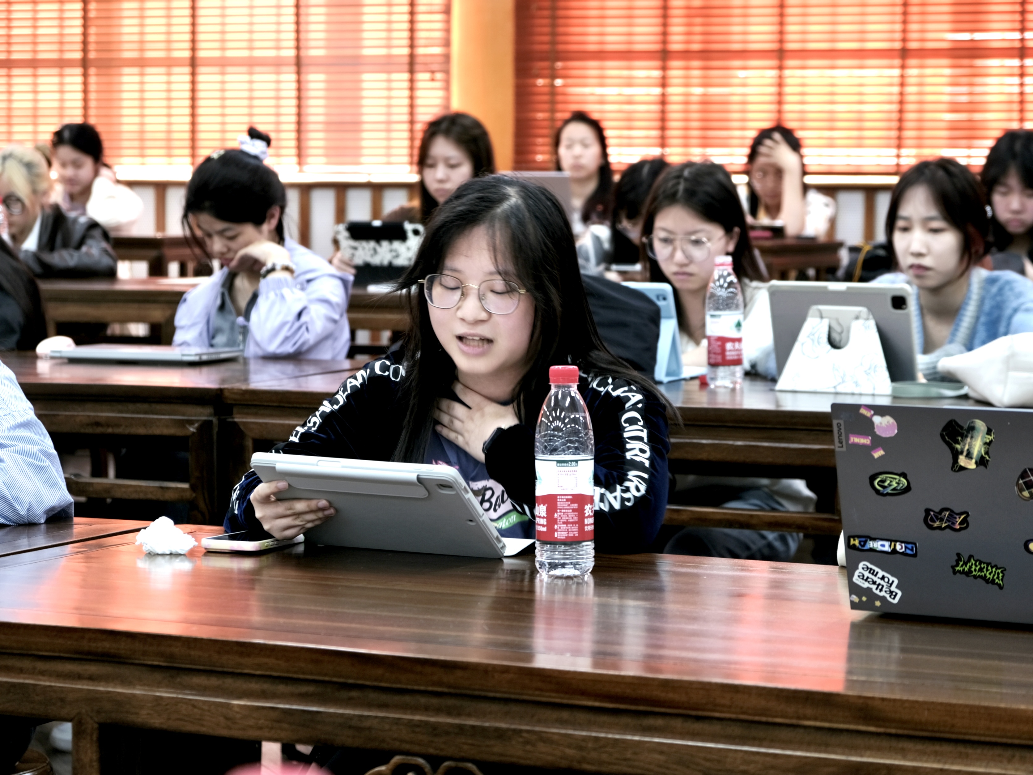 21文学4班的余梓涵同学也发表了意见:“齐邦媛在最深的爱意中长大成人,最令我触动的是她碰到张大飞的那一段,从她个人视角变为上帝视角,如此悲伤。”