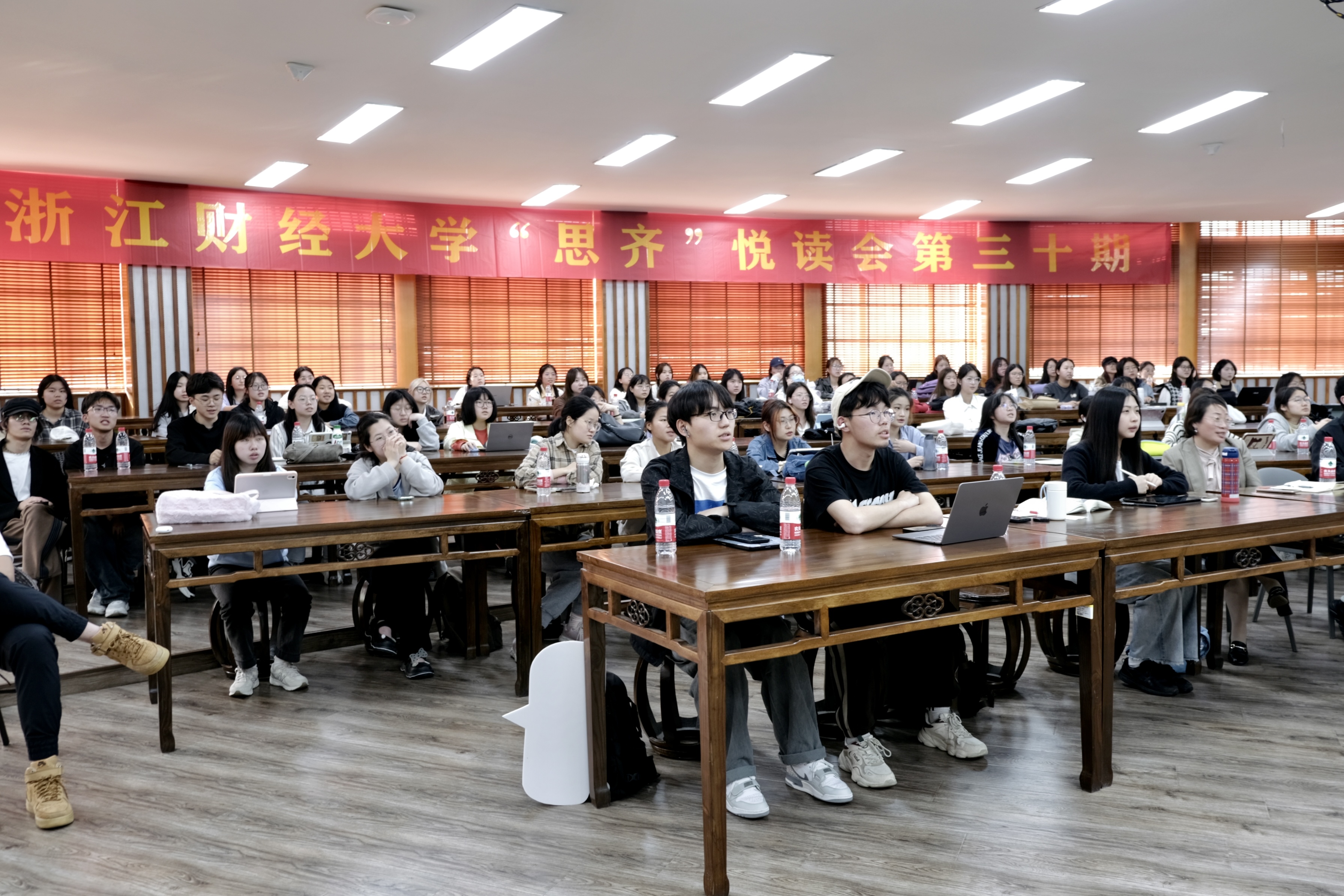 4月23日,第二十九个世界读书日,微风徐徐,阳光明媚。tyc122cc太阳成集团tyc122cc太阳成集团第三十期“思齐”悦读会在公司楼问津书院隆重举行。此次读书会由tyc122cc太阳成集团荆亚平教授主讲,党委副书记袁慧兰主持,辅导员刘财国以及来自全校八十多位同学参加。