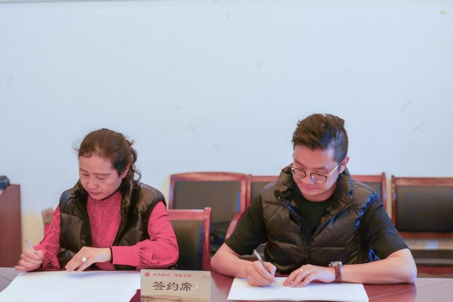 捐赠仪式上,罗金艳代表公司与罗宾汉品牌管理有限公司代表李冠东签订了基金捐赠及实物捐赠协议。
