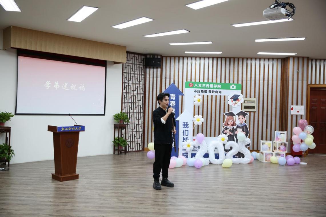 23级汉硕高任飞代表学弟学妹们用箫演奏《阳关三叠》。他们也向学姐学长们传递了最真挚的祝福,双方的深情与祝愿交织成一曲和谐的交响。