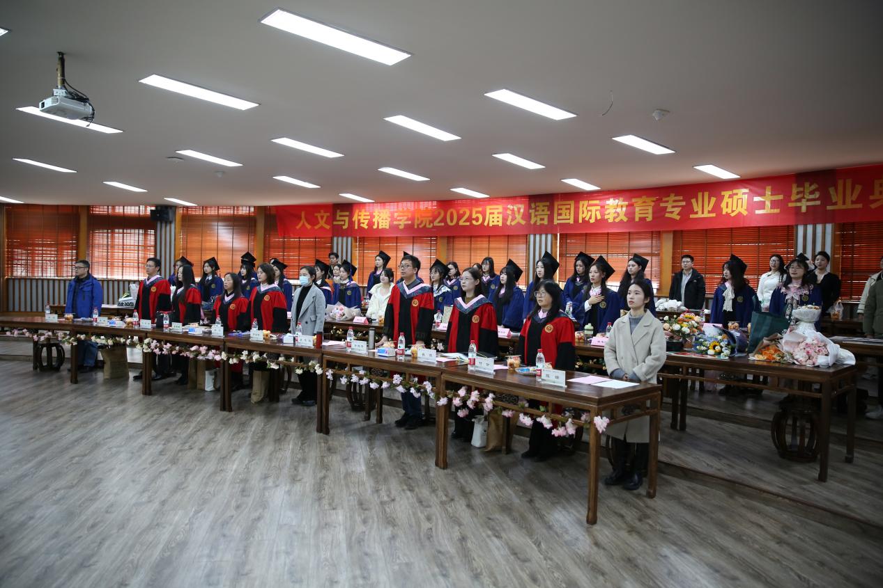 2025年1月8日下午,随着毕业短片的放映,2025届汉语国际教育专业硕士毕业典礼暨学位授予仪式在问津书院隆重举行。人文与传播公司党委书记罗金艳,副经理毋丹,毕业生导师孙德平、吴智斌、崔霞、付伊、王迅、汤燕君,研究生辅导员陈琛,研究生秘书王泉,以及26名2025届汉语国际教育专业硕士毕业生出席典礼,仪式由公司党委副书记袁慧兰主持。