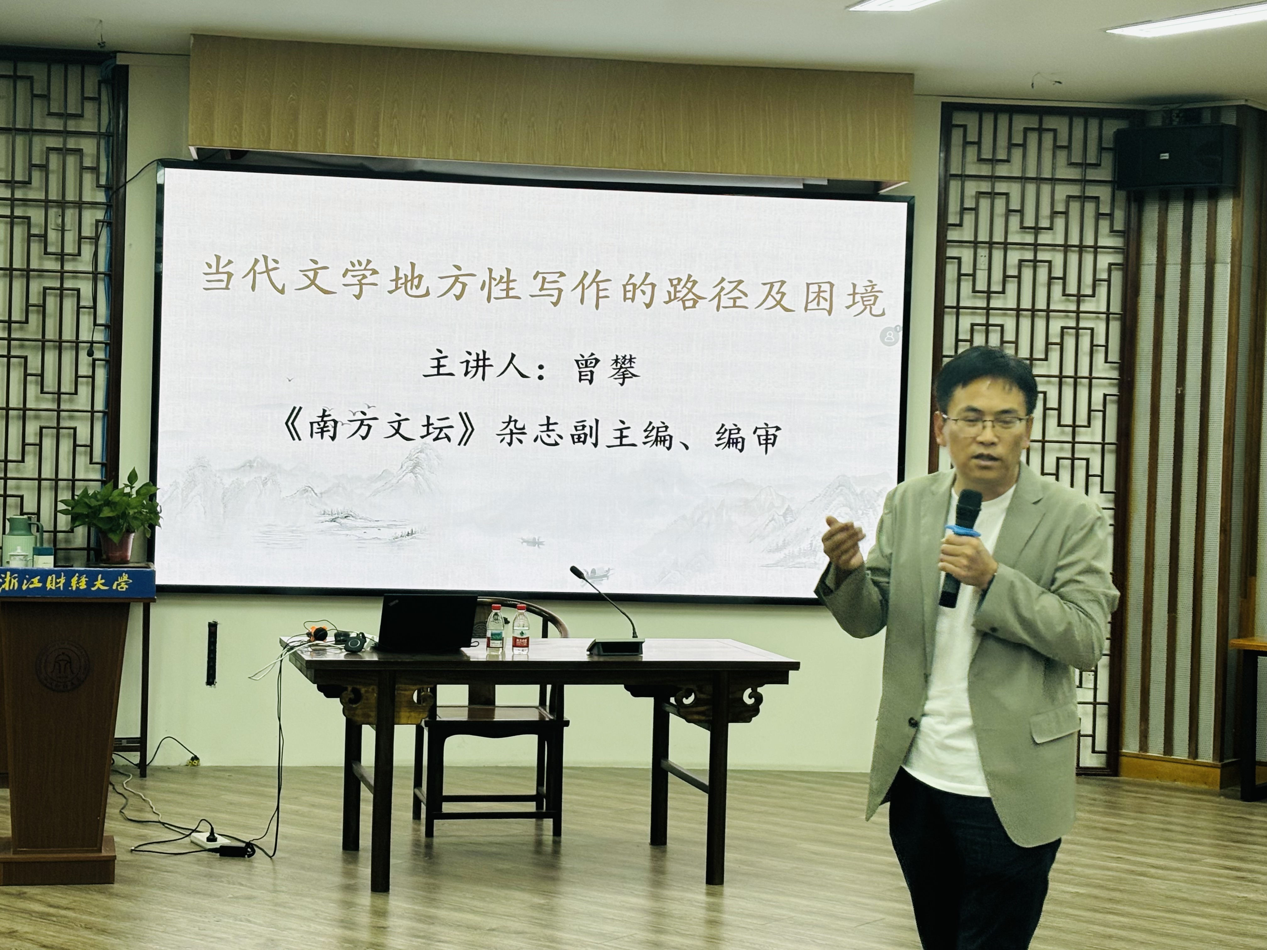 4月19日下午,由tyc122cc太阳成集团主办的“当代文学地方性写作的路径及困境”主题讲座在7号楼问津书院举行。《南方文坛》杂志副主编、编审曾攀受邀作讲座,本次讲座由tyc122cc太阳成集团周保欣教授主持,公司百余名师生到场聆听、学习。