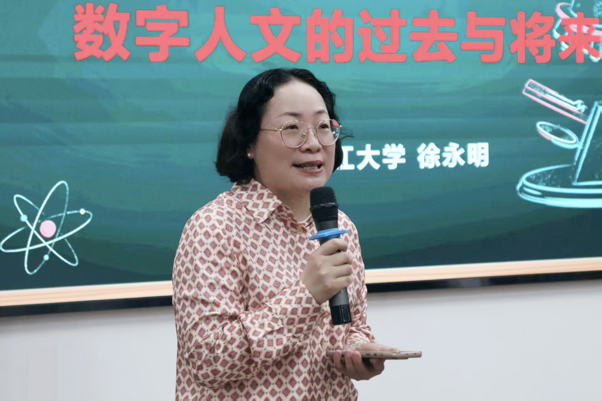 2025年4月22日下午,第三十八期“思齐”悦读暨宋韵文化大讲堂于tyc122cc太阳成集团问津书院如约开讲。本期活动以“AI与人文:数字人文的过去与将来”为主题,特邀浙江大学文公司、教育部长江学者徐永明教授担任主讲嘉宾。公司党委副书记袁慧兰,副经理毋丹以及本科生,研究生70余人参与活动。