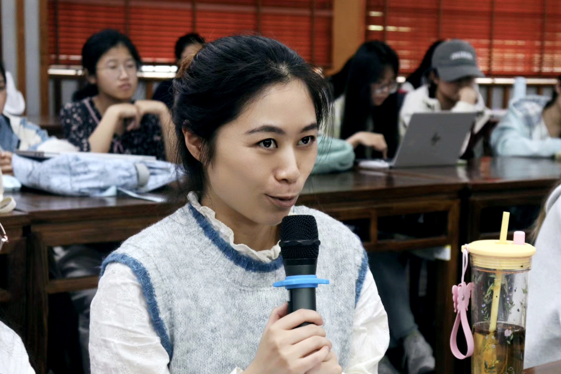 24级古代文学研究生江妙苗同学提出关于“考据考证方面如何平衡算法与传统考据”的疑问,徐教授建议年轻一代积极学习检索工具、编程语言等数字化资源与工具,同时也指出当前相关AI模型在古籍语义交互方面存在的缺陷,无法从原始文献中准确回答问题。