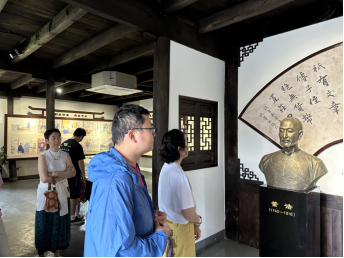 517日,教职工党员首先参观了清风堂,开启以清正廉洁守初心为主题的学习之旅。清风堂内,承载岁月记忆的文物、详实的史料与专业的讲解,生动展现董邦达、董诰父子清正廉洁、艺文大家、道德风范三大主题。