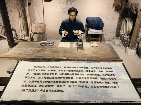 在陈望道故居,党员同志们参观了陈望道当年翻译《共产党宣言》的柴房旧址,聆听了陈望道误吃墨水的动容故事。大家真切地感受到了何谓真理的力量,正是怀着追求真理的坚定信仰,以及作为一名共产党人的自豪与认同,墨汁才会比红糖更加香甜。