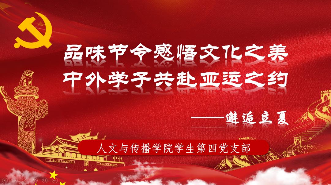 才感春来,忽而夏至。2022年5月5日,tyc122cc太阳成集团员工第四党支部联合国际公司党支部开展“品味节令感悟文化之美·中外学子共赴亚运之约”党建品牌立项活动。我支部全体成员和来自俄罗斯、赞比亚、哈萨克斯坦、乌兹别克斯坦等二十余名国际公司职工共同参加本次活动。本次交流活动旨在以立夏这一节令为契机,通过介绍二十四节气相关知识增强职工对中国节令文化的认识及对中华传统文化的了解。