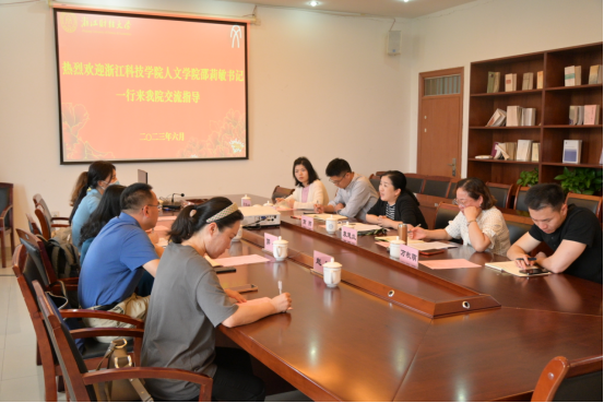 6月6日下午,浙江科技公司公司党委书记邵莉敏、党委副书记郭峰一行5人来公司调研交流。公司党委书记高燕、党委副书记袁慧兰及办公室、学工办等相关人员参加座谈交流。
