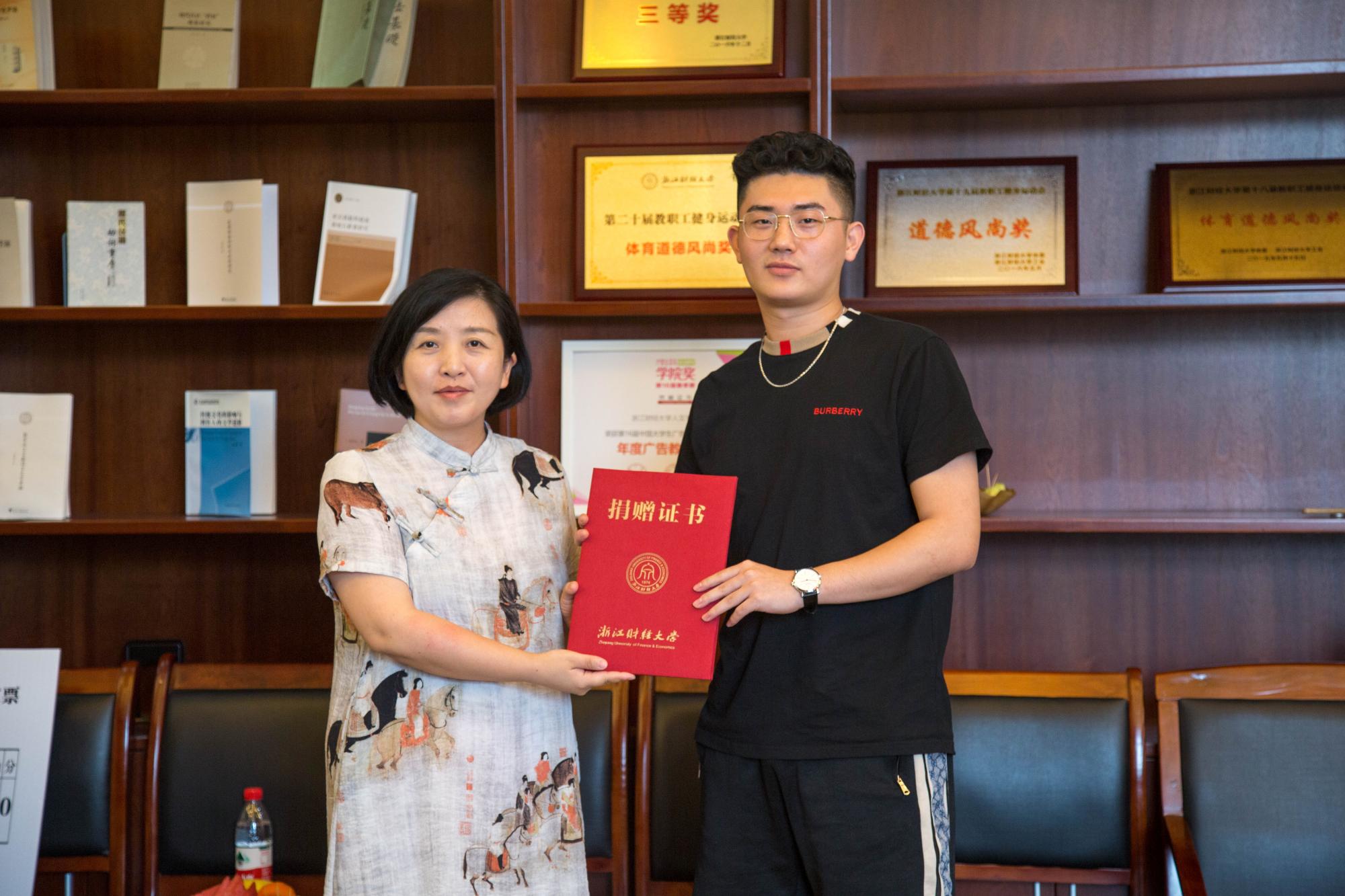 捐赠仪式上,经理何华珍和书记高燕代表公司接受了员工捐赠,高燕书记向詹天卓颁发了公司捐赠证书和纪念杯。