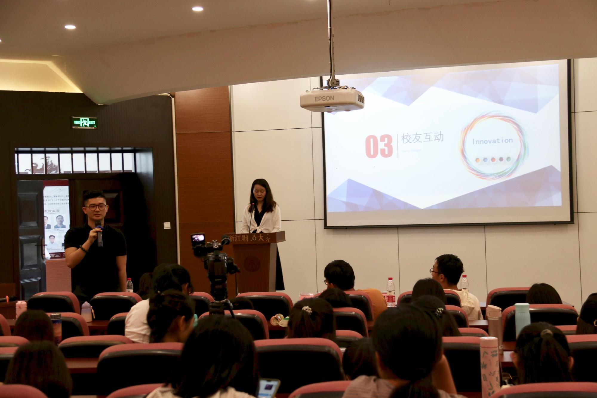 第二阶段,员工们纷纷与在校生分享了自己创业经历和创业故事。赵国强员工通过过讲述“做好两件事”“产品商业化”“合理分工”“定义成功”等七个主题向大家分享了他的创业感悟;张加林员工结合自身的创业经历和老员工活,声情并茂地对大家进行了创业经历;汤凯文员工从他的创业经历出发,分享了企业文化和企业定位,同时还强调了“合作”和“反思”在创业过程中的重要性;詹天卓员工风趣幽默地讲述了自己的从业和创业过程,向同学们强调了“做人”和“情商”在商场中的重要意义。在互动环节,同学们就大学阶段的专业学习对创业的影响,创业途径以及创业的生活节奏与员工们进行互动交流,四位员工结合自身经历,一一回答了同学们的提问。