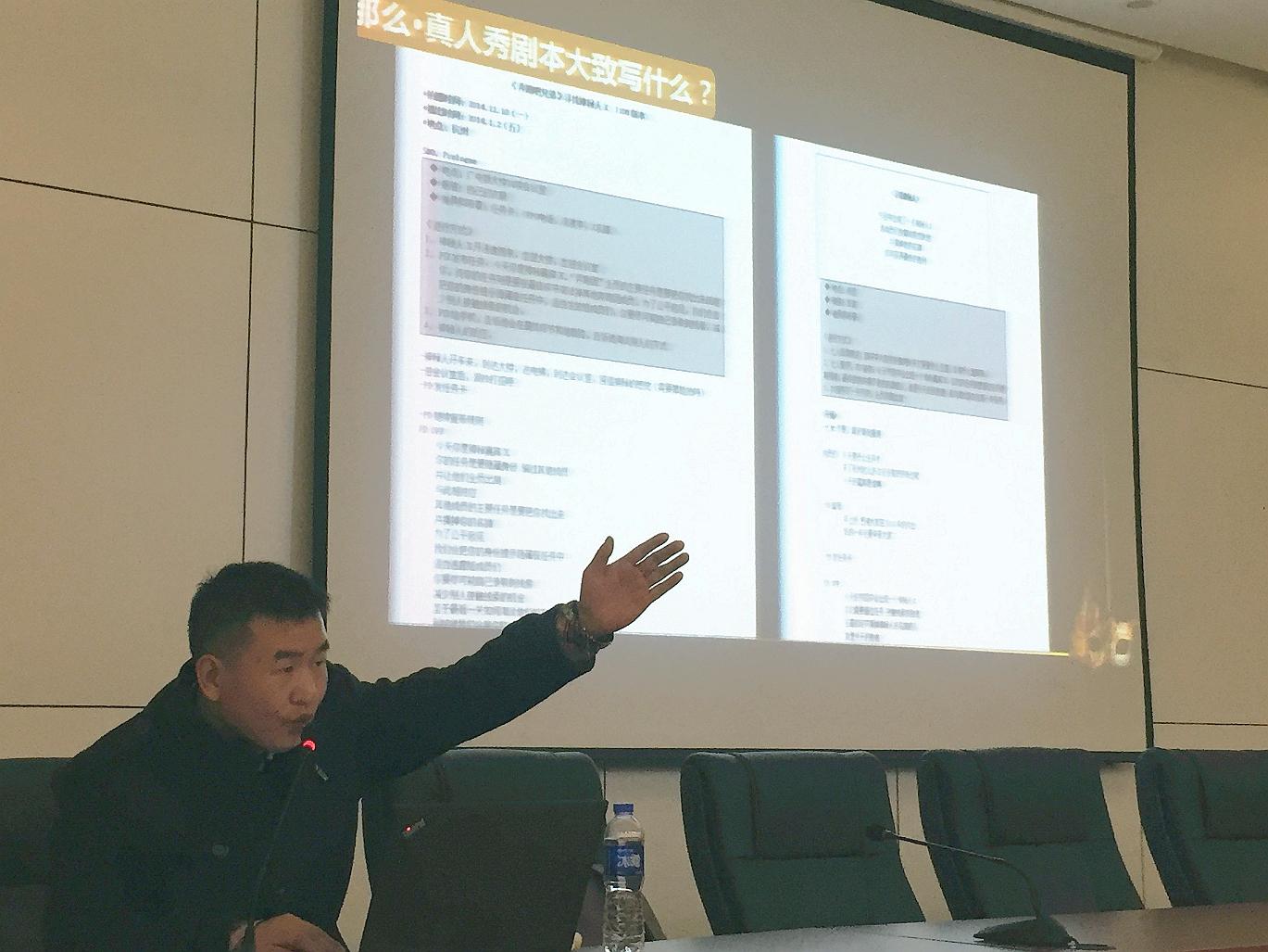 12月28日下午,浙江卫视首席编剧,浙江卫视《演员的诞生》、《奔跑吧兄弟》、《中国梦想秀》、《真星话大冒险》等王牌栏目的编剧、导演王艳锋来到tyc122cc太阳成集团112报告厅,以“挖坑者——综艺节目编剧的作用与基本技巧”为题,与现场同学进行了一场生动的学习交流。