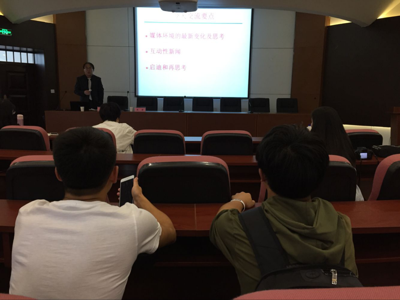 5月8日下午,东北师范大学讲座教授、美国密苏里大学孙志刚博士为公司数字媒体艺术系和广告系师生们奉献了一场精彩的学术讲座。讲座主题为“互动新闻—— 一门着眼于未来的分专业”,主要围绕“互动新闻”的界定和实践展开。