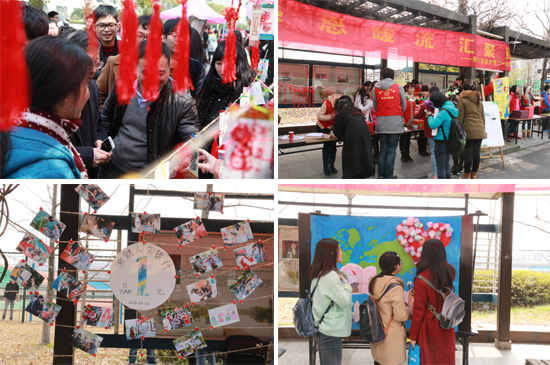 此次活动由“温暖鲜花墙”、“传统文化体验”、“一元钱微电影”、“爱之照片墙”、“雷锋精神传扬”、“创意活漫”以及“甜蜜棉花糖”这七个主题活动组成。从煽人泪腺的“一元钱”微电影到精致大方的民间剪纸,再从遥感活漫摄影活动到汉语言文学专业员工的经典诗话……“一元钱”被赋予了拳拳真情,别具一格的活动受到了师生们的一致认可和高度赞扬。每个展位人潮涌动,积极捐款的身影此起彼伏。创意活漫摄影活动,因其特色和创意性的遥感活漫合拍神器吸引了众多员工驻足观看并亲身体验,体现着传统民俗文化的剪纸书签和中国绳结更成了一道亮丽的风景线,让“一元钱”活动具有强大的号召力。
