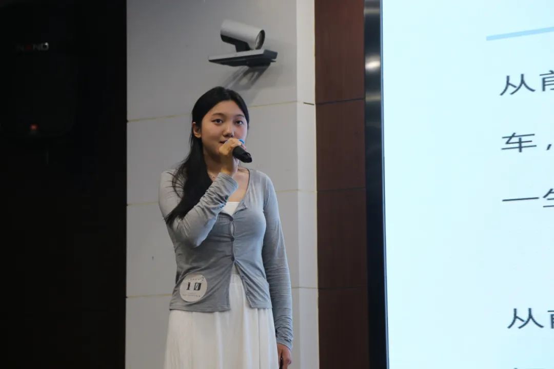 随着比赛拉开帷幕,陈杏佳选手一马当先,声情并茂地讲解《相见欢》。她从“谢”字出发,通过一条时光隧道引领我们穿越千年风尘,抵达金戈铁马、家国天下的时代,与“风流才子,误作人主”的词人心灵交汇,在相见之欢与离别之苦交织而成的旋律中共同探寻生命之谜。
