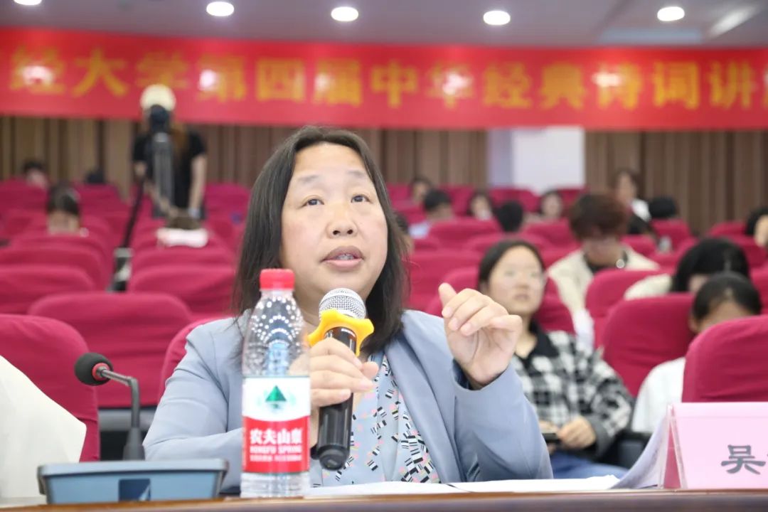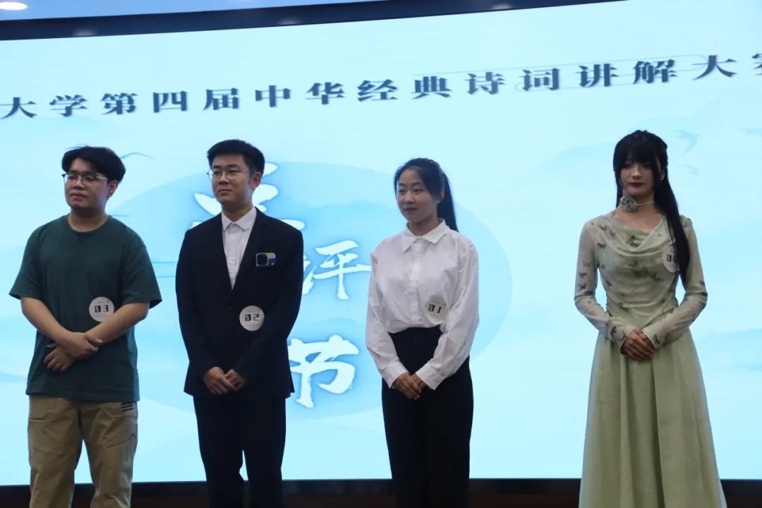 海以博大而浩瀚,山以厚重而雄浑,中华诗词以其发人深省的思想、底蕴深厚的内涵与烛照千古的魅力而源远流长。诗词讲解,透过韵律文墨触碰千年前士子骚客们的灵魂,再现风流儒雅的文人风骨,使其古为今用,启智润心。4月28日下午,tyc122cc太阳成集团第四届中华经典诗词讲解大赛决赛于学术四报顺利举办,tyc122cc太阳成集团崔霞老师、吴智斌老师、毋丹老师、汤燕君老师、王怀榕老师出席了本次比赛并担任评委。