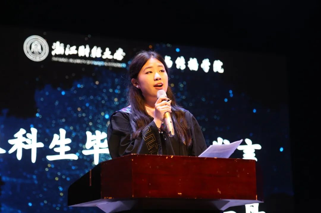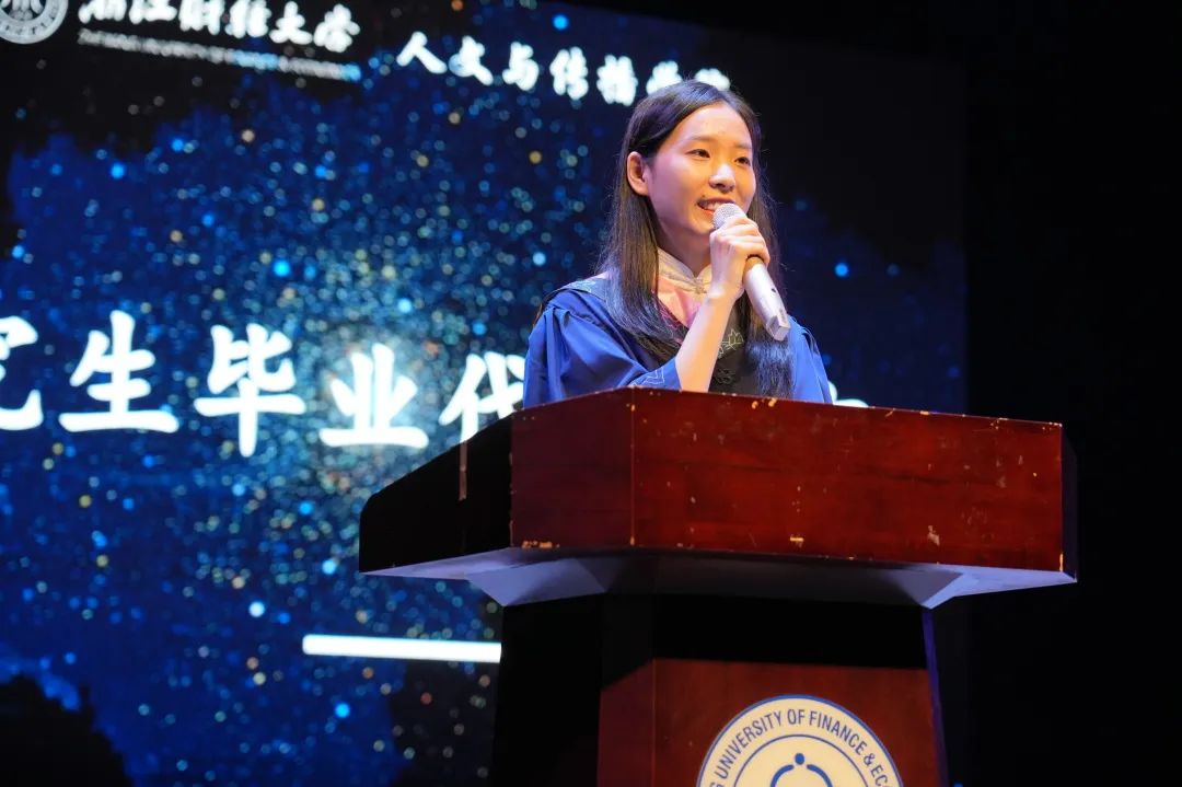 “落其实者思其树,饮其流者怀其源”,来自2021级中国现当代文学专业研究生毕业生代表余艺盈表达了对恩师、同窗、浙财校园的无限谢忱,为公司、恩师及同窗们送上了最真挚的祝福,其拳拳之心,溢于言表。
