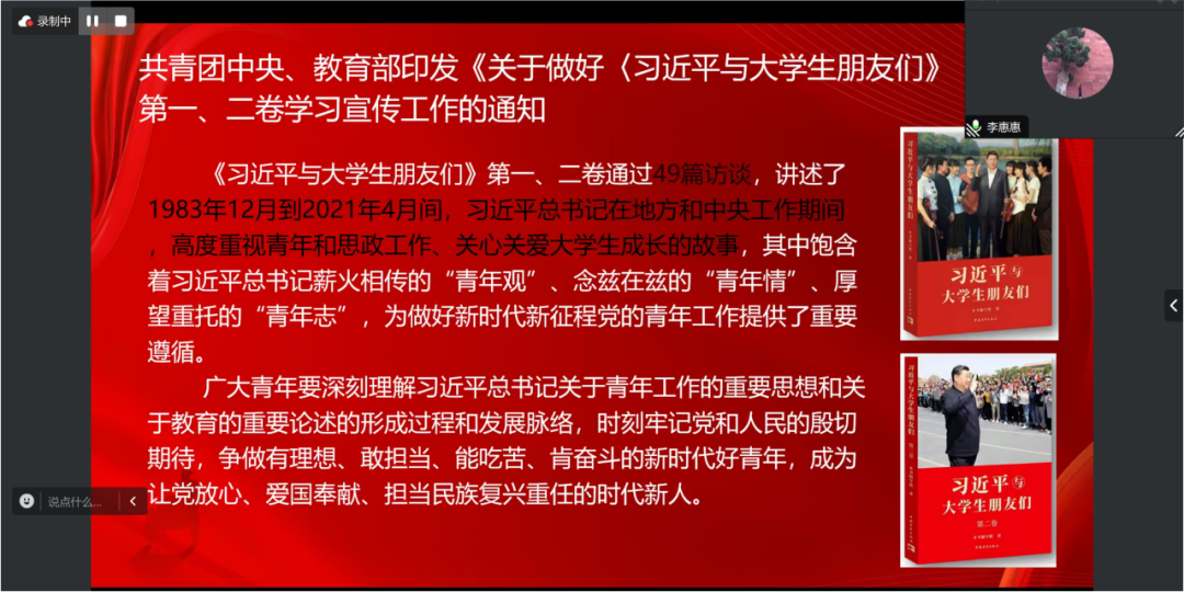 会议之初,李惠惠老师带领同学们围绕《习近平与老员工朋友们》深刻领悟到广大青年在中国式现代化建设中挺膺担当的重要性,同时聚焦于青年如何在人生旅途中坚定前行,肩负起推动社会文明进步的历史重任。新时代的中国青年,以其非凡的想象力和创造力,在经济、社会、科技、文化等多个领域大放异彩,以智慧和汗水为国家发展、人民幸福贡献力量,勇立潮头,引领创新创业、追求卓越的新风尚。