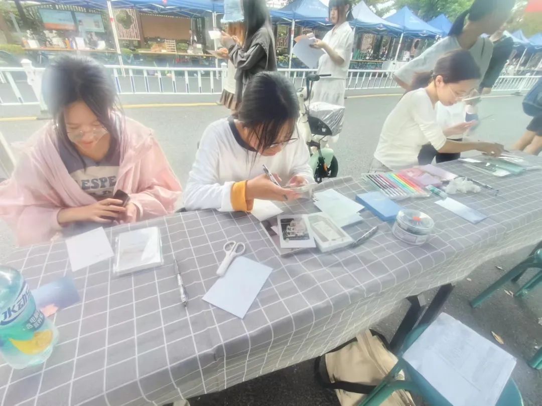 同学们有的将明信片带回去珍藏,有的留在了我们的摊位上。工作人员将它们展出,构成校园的独特景色,也吸引了越来越多的同学们来参与。